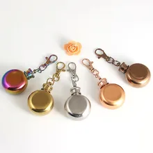 .Images of Creative mini 1 oz sealed cans 304 stainless steel hip flask bottle thick waterproof storage bottle key ring pendant container